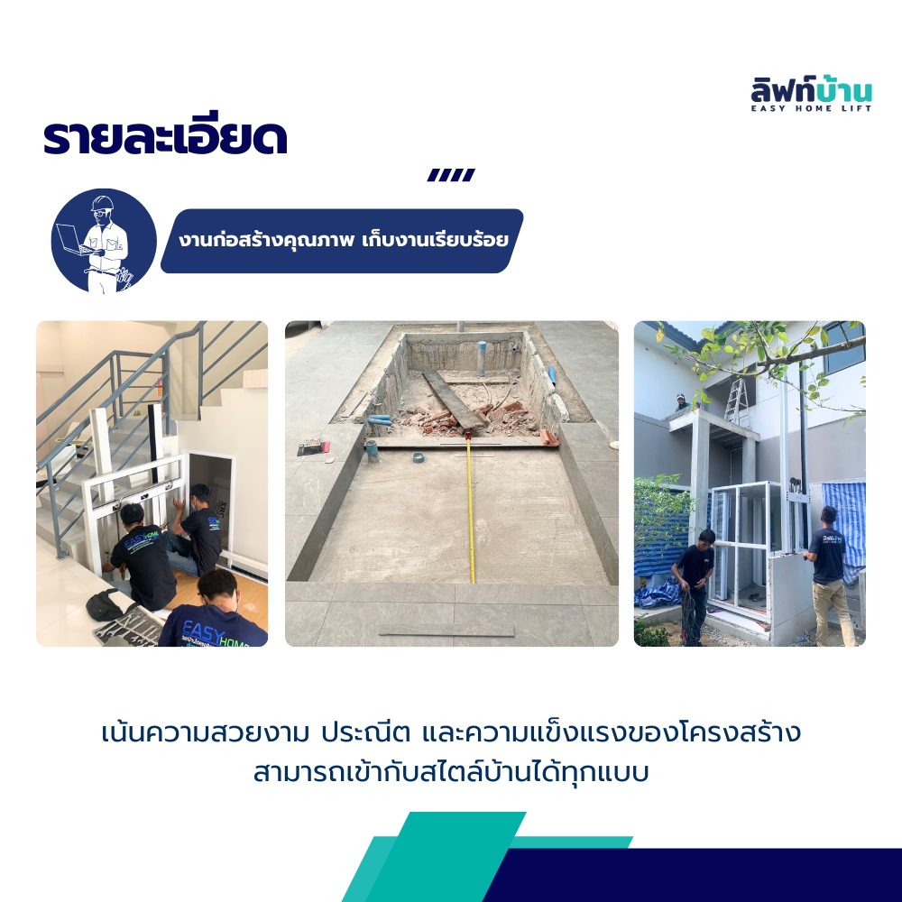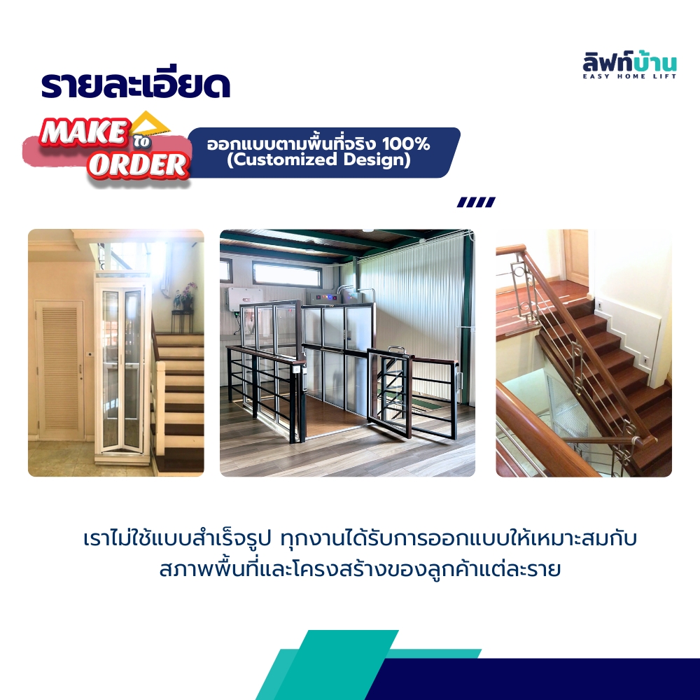 ตัวลิฟท์สามารถติดตั้งได้หลายตำ แหน่ง ไม่ว่าจะภายในตัวบ้านหรือด้านนอกอาคาร ช่วยให้ออกแบบได้ยืดหยุ่นตามสไตล์บ้าน